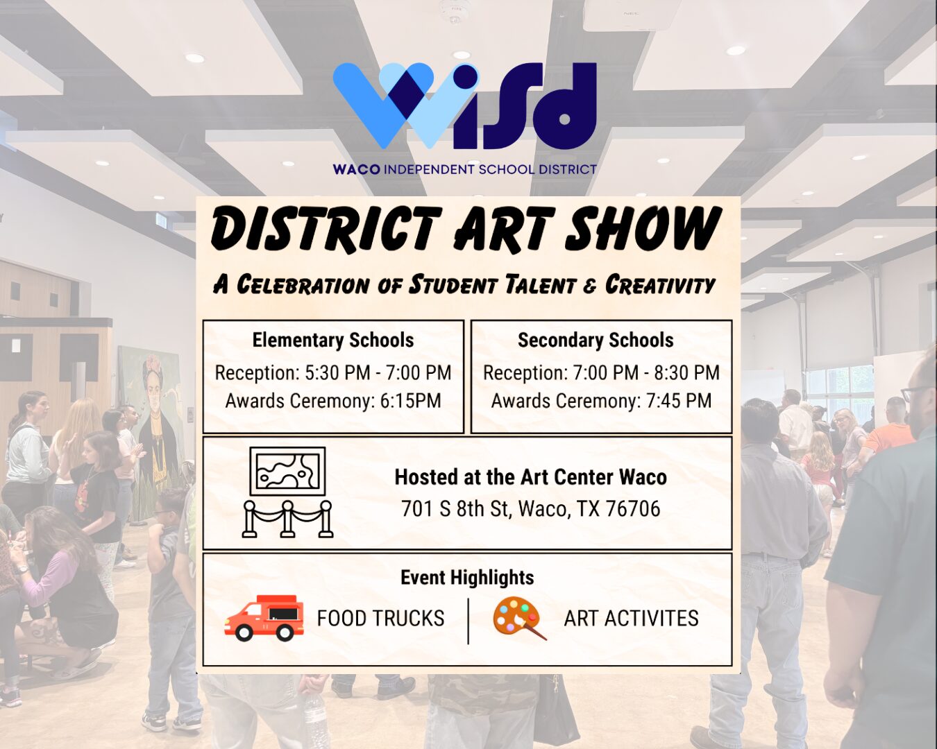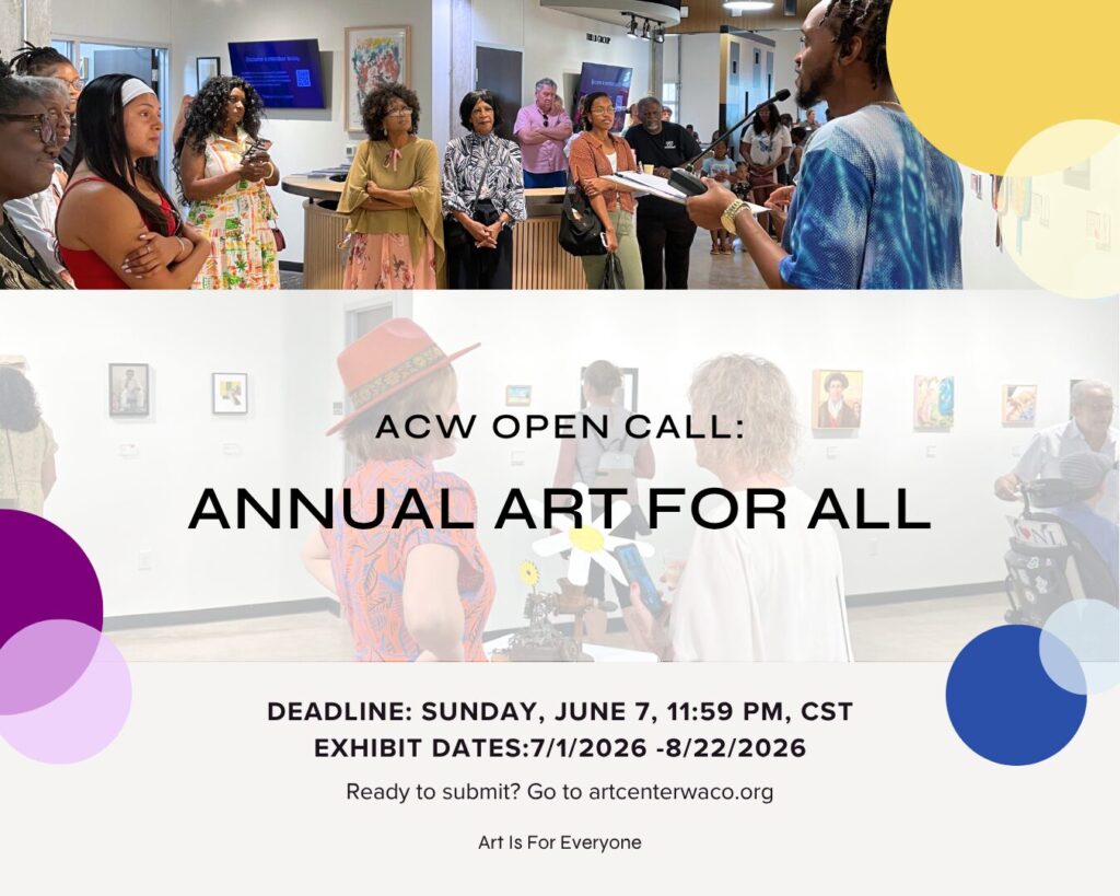 Contributions are tax-deductible to the fullest extent of the law. Art Center Waco is a 501(c)3 non-profit organization, tax ID# 74-1721811.